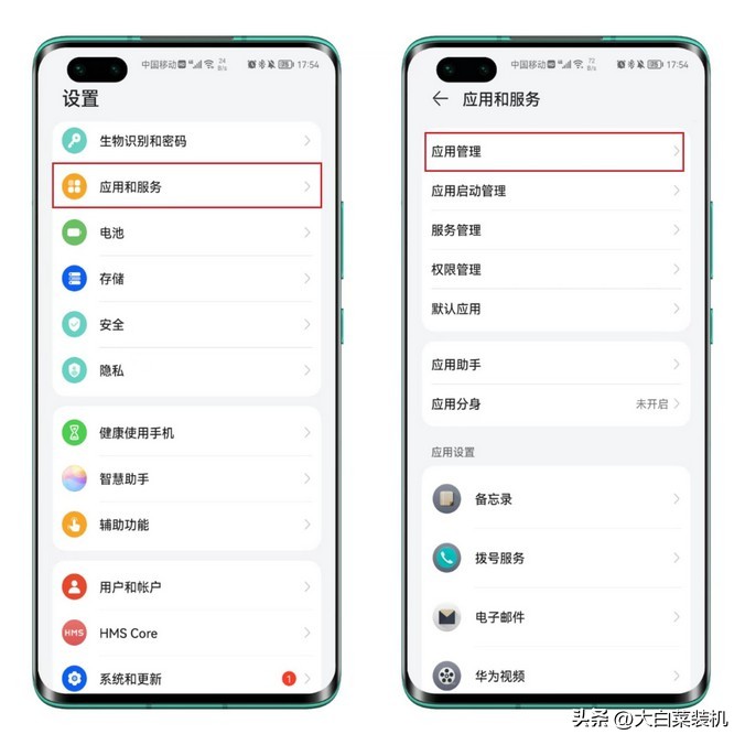 首先,打开手机【设置】页面,找到【应用和服务】,进入【应用管理】页面。
