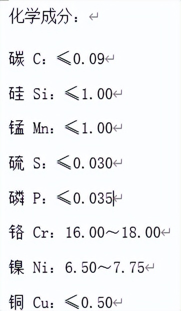 ⑹铬Cr:16.00~18.00,