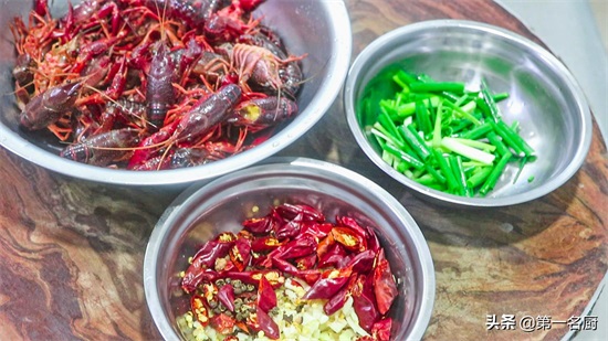 食材:小龙虾,大蒜,生姜,花椒,红干椒,麻椒,小葱
