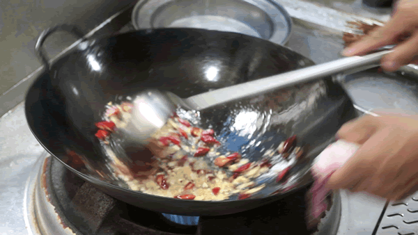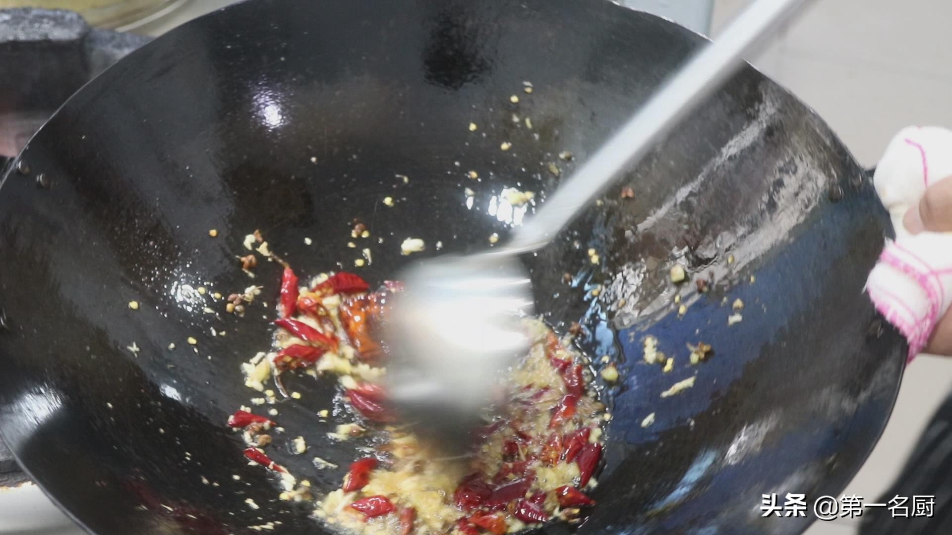 6.锅内再添入少许食用油,倒入辅料炒香。