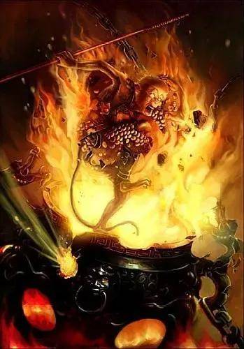 六丁神火:六丁神火为太上老君将三昧真火,以文武火之势,在紫金八卦炉中炼化七七四十九天而衍生出的神火。六丁神火的威力有多大。西游记中太上老君曾与观音菩萨打赌,将观音菩萨的杨柳枝放在八卦炉中炙得焦干。金箍棒、九齿钉耙、紫金铃等兵器法宝都是从八卦炉中炼出来的,由此可见六丁神火的威力。将身绑在降妖柱,即命神兵把首枭。刀砍锤敲不得坏,又教雷打火来烧。老孙其实有手段,全然不怕半分毫。送在老君炉里炼,六丁神火慢煎熬,慢煎者必定是文火,天干中只有丙和丁代表火,其中丙是武火,丁是文火。火系先天之物,兜率宫的特产,追求丹道者梦寐以求的神火