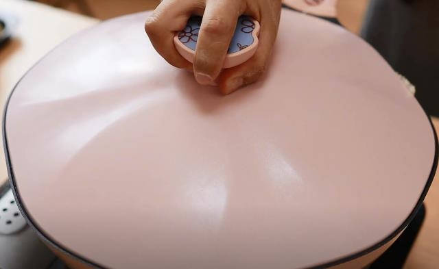 4.你会发现蒸好的面粉已经结块了,这时候我们再用擀面杖压碎。