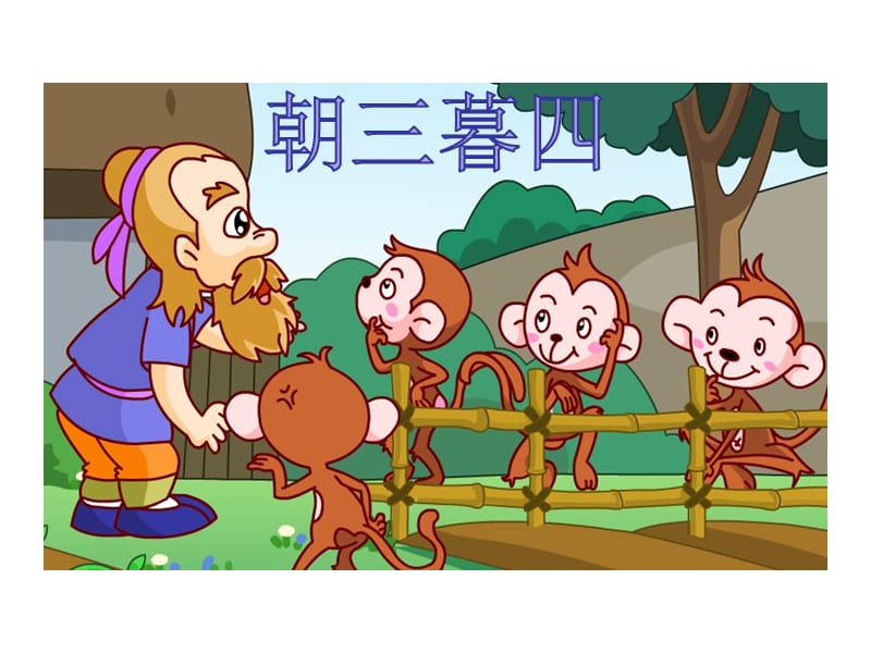 在战国时,宋国有位老人,家里养了好多只猕猴。当时他们家里粮食并不丰裕,猕猴们总是吃不饱。于是他想到一个办法,每天额外用橡树子喂食猴子。