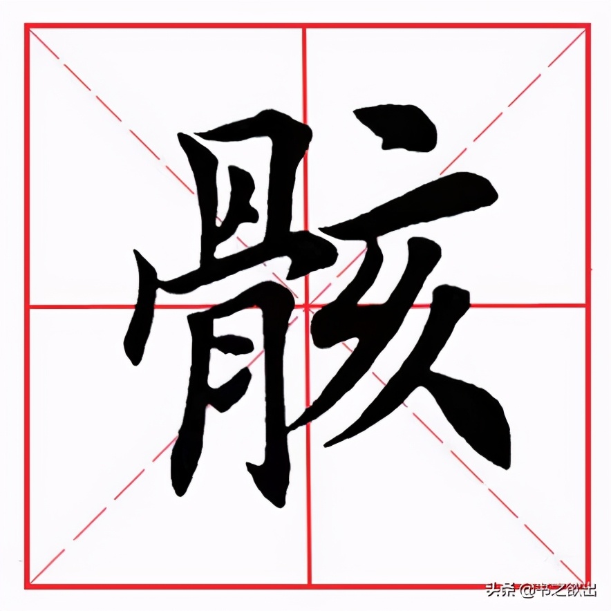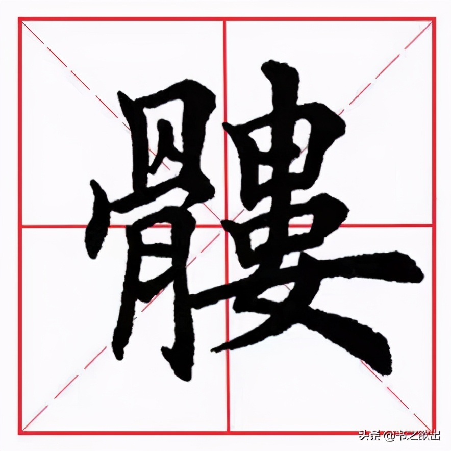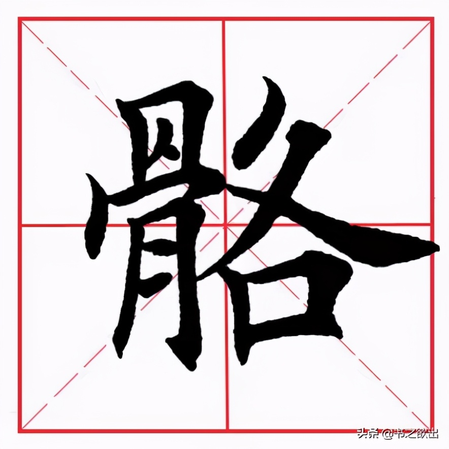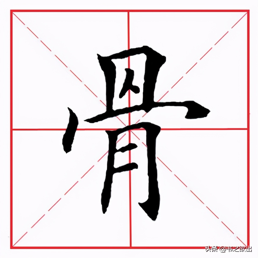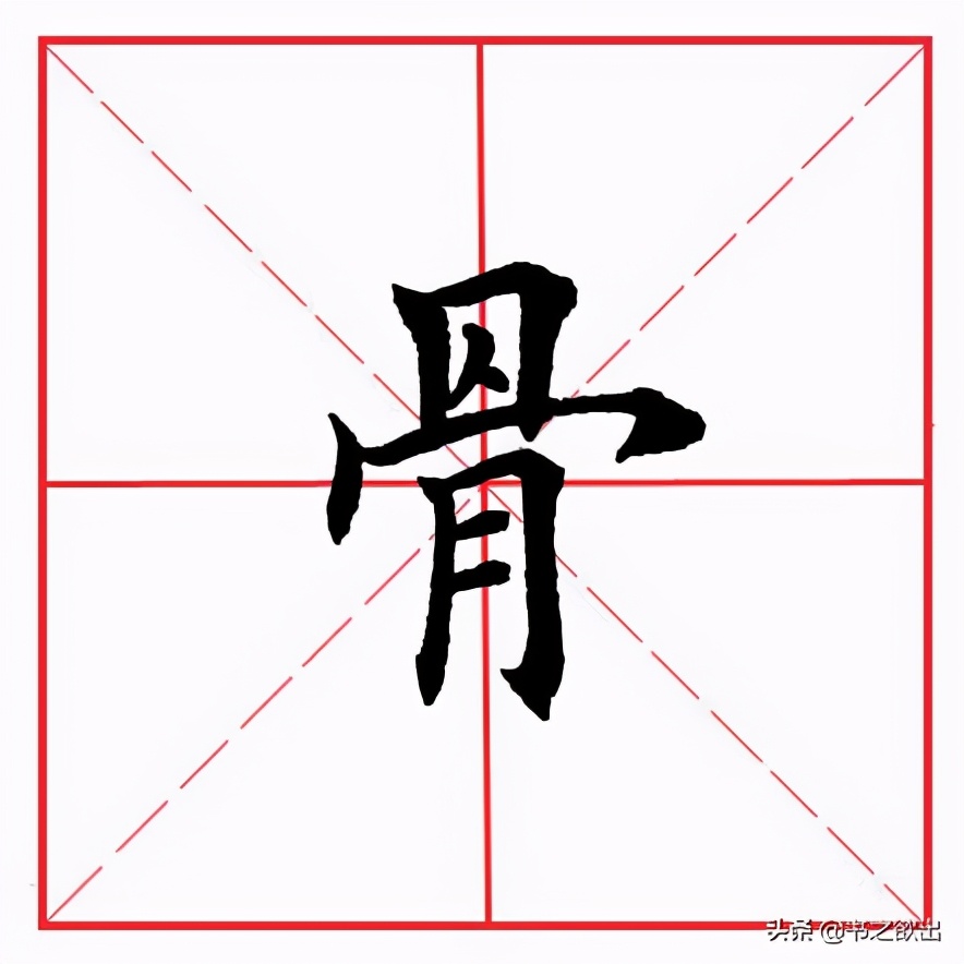 田英章毛笔楷书偏旁部首之骨字旁:“骨”。