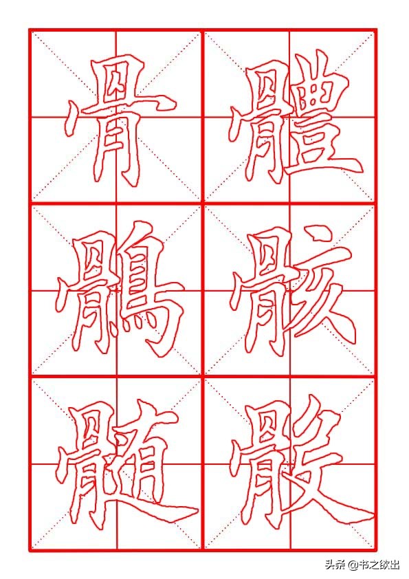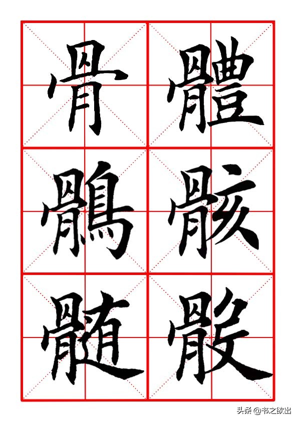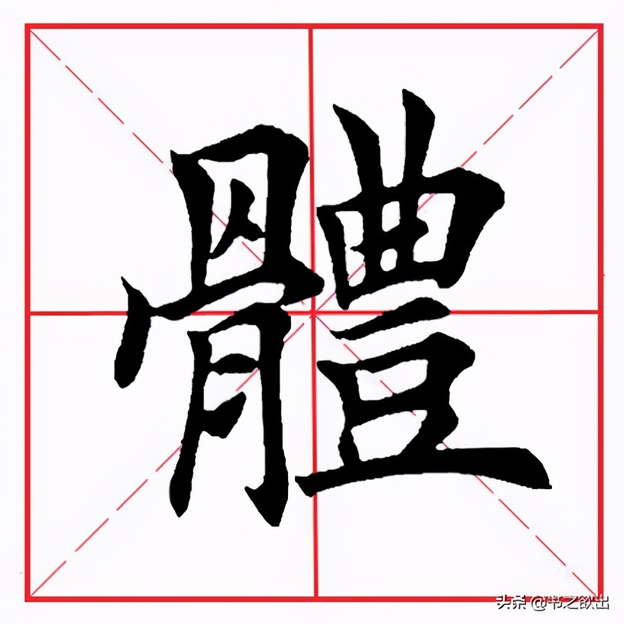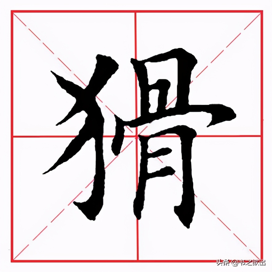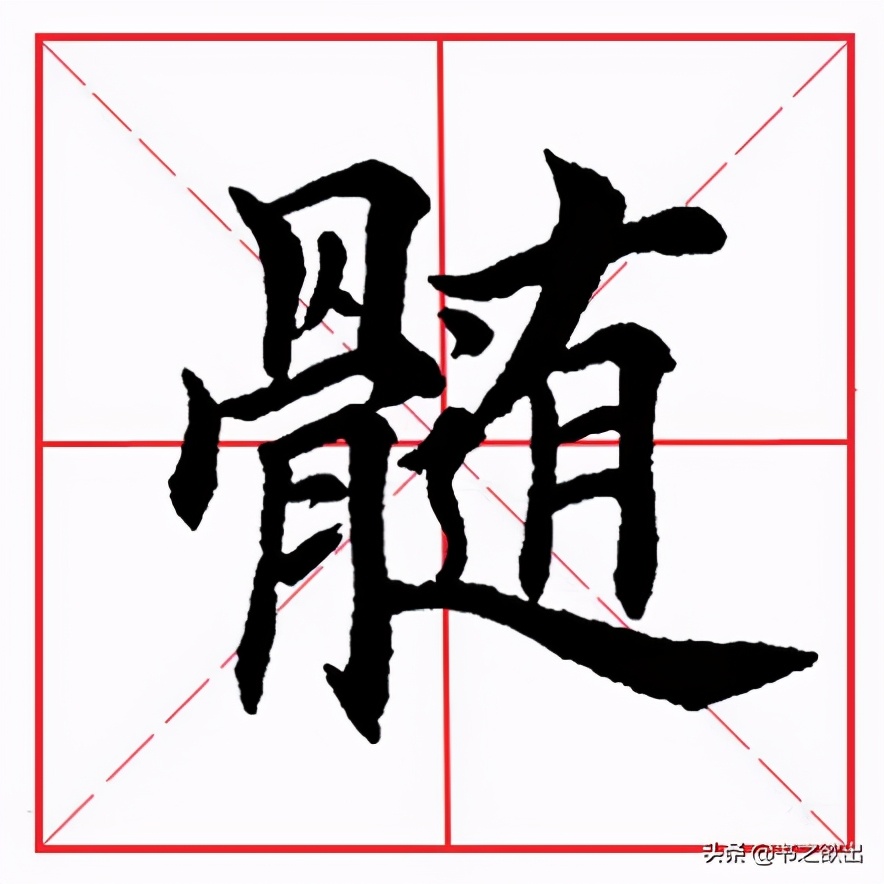 田英章毛笔楷书偏旁部首之骨字旁:“骨”。