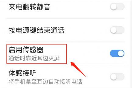 当用户开启“启用传感器”选项时,接听电话后,靠近耳边就会出现灭屏(黑屏)的情况,只要将其关闭掉,下次接电话时,就不会黑屏了。