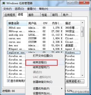 在“进程”选项页中找到“ explorer.exe”应用程序进程,在右下角找到“结束进程”,然后单击“确定”。