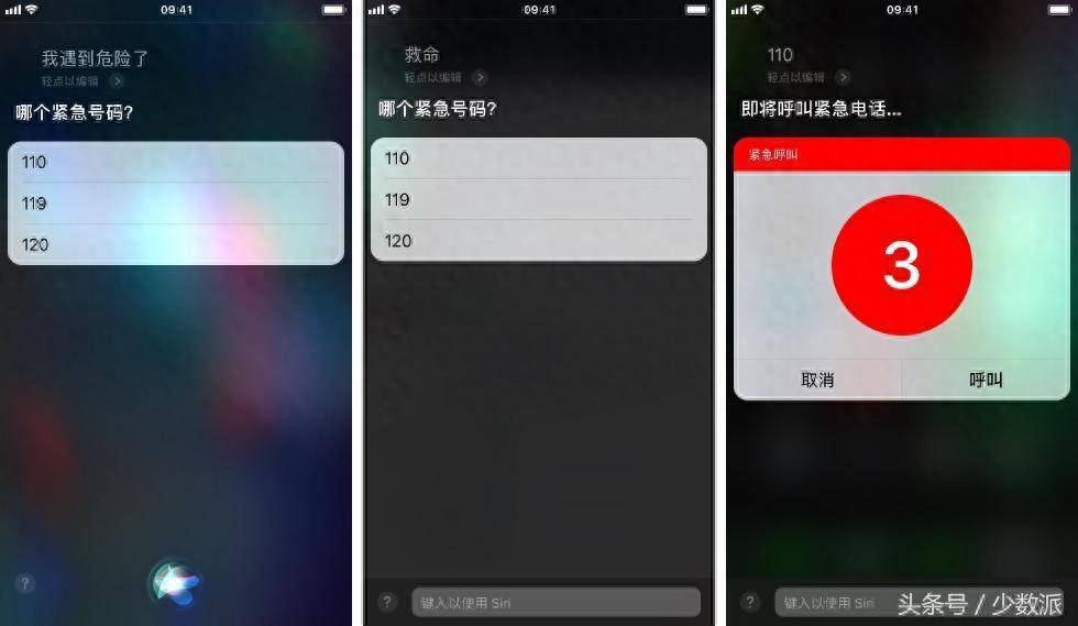 遇到紧急情况,可以向 Siri 喊救命,Siri 可以帮你拨打紧急电话。由于中国有三个紧急电话,你需要再次跟 Siri 说明,拨打哪一个电话。