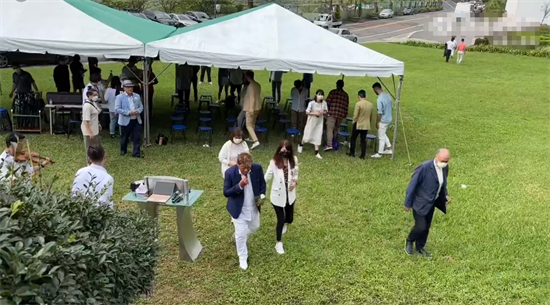 在揭幕仪式现场,陈建州作为好友致词,发言十分感人,每位亲友都手执一朵白玫瑰,依次走到铜像前献花,每个人的脸上都写满了不舍难过。