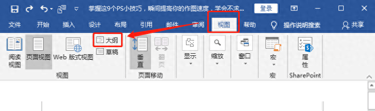 1、打开需要自动生成目录的Word文档,然后点击菜单栏上的【视图】,在工具栏内选择【大纲】,接着就会进入大纲视图。