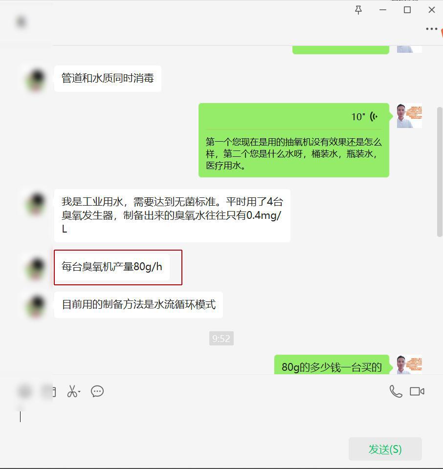 客户反馈:4台臭氧发生器,每台80g;