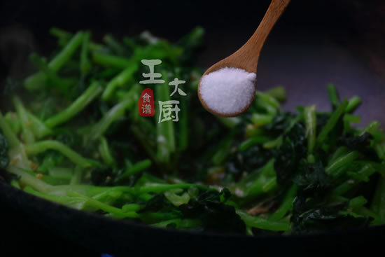 8、加入适当量的盐巴,进行简单的调味。
