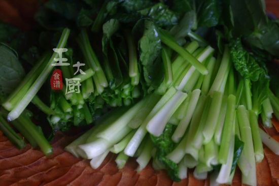 准备食材:苔菜、蒜末、白糖、胡椒粉等。