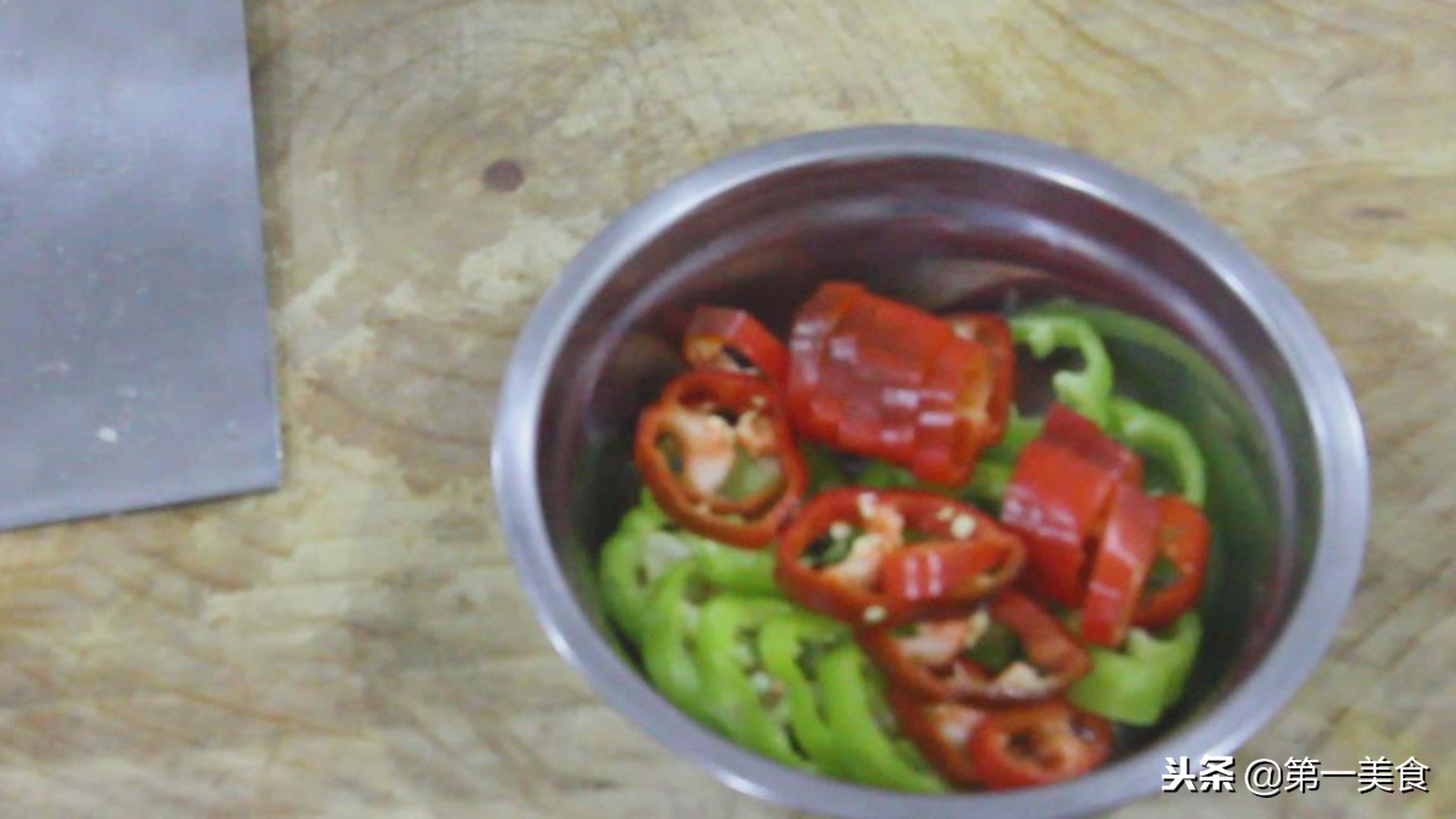 青红椒用水冲洗一下,也撒入干淀粉搅拌。