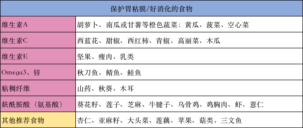 我为脾胃不好的朋友整理了一个表格,朋友们可以根据自己的实际情况作为养胃食材的参考。