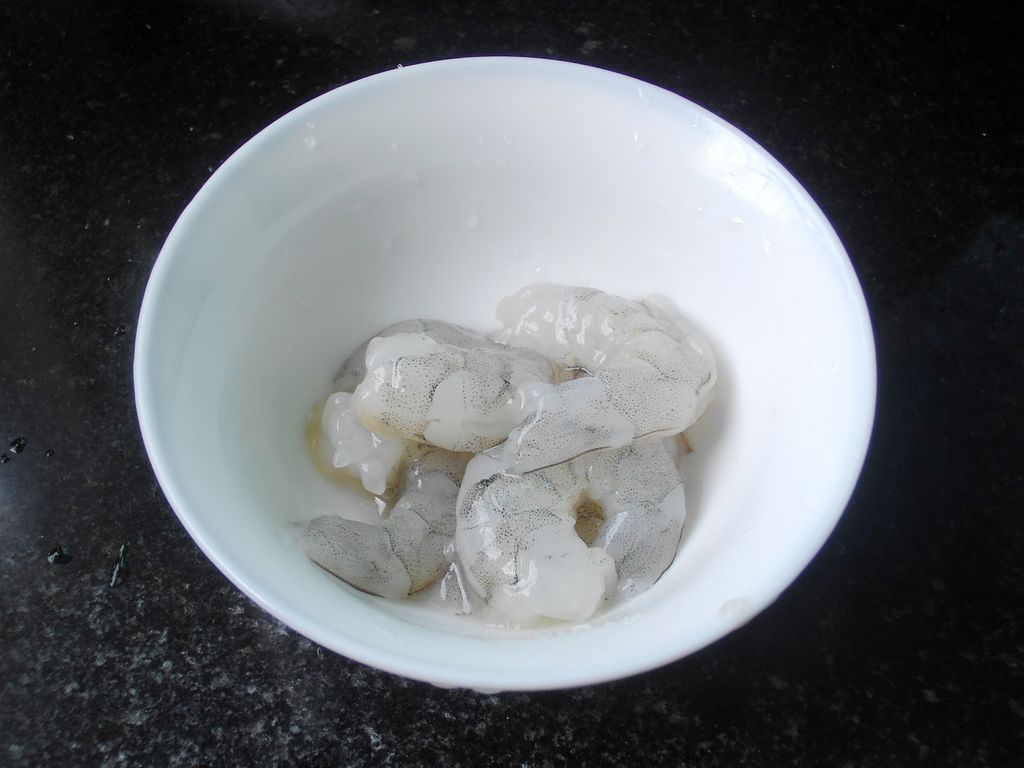 6.虾取虾仁,去掉虾肠虾线,加少许盐腌制一会儿。
