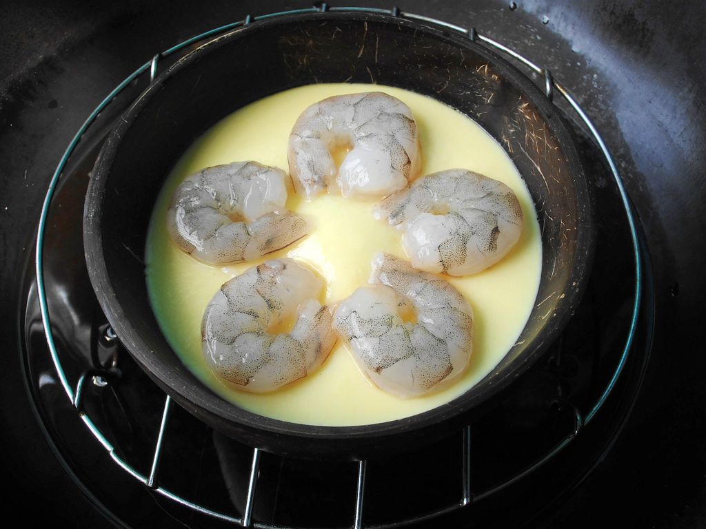 鸡蛋2个、鲜虾5只、盐适量