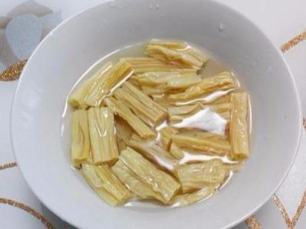 一般我们在泡腐竹的时候,都是直接用一个碗盛上清水,然后把腐竹放里面开始泡。其实用这个方法是不对的,单纯的用清水泡是泡不好的。应该在清水中放入一些白醋,腐竹在白醋的作用下,很容易就会泡开了,而且泡开的腐竹一点都不烂。接下来就告诉大家凉拌腐竹应该怎么做。