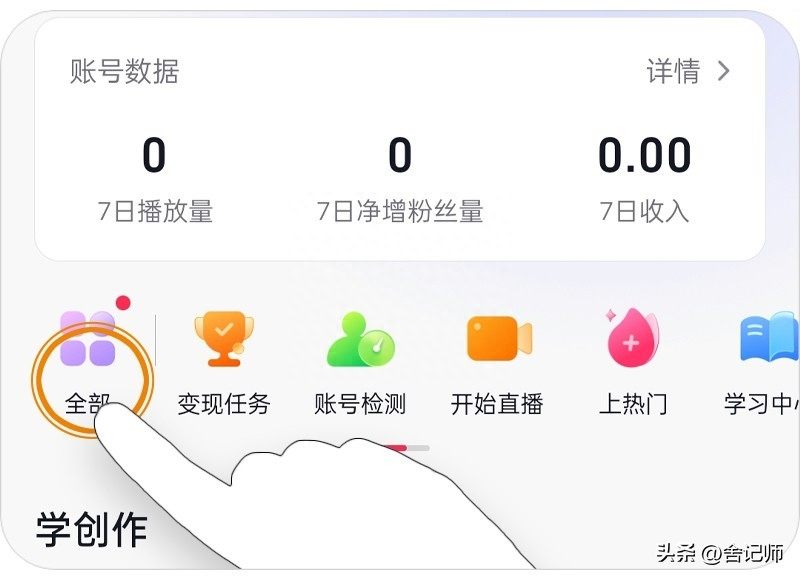 进入创作者服务中心页面后找到并点击【全部】。