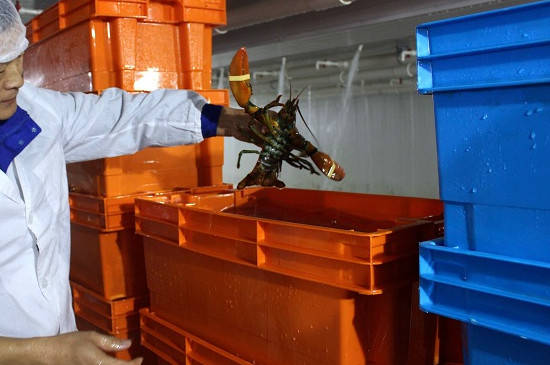若是遇到气温较高或比较寒冷的天气,建议将大龙虾放于空调间保存,环境温度可以控制在10℃~16℃。具体的方法是先将大龙虾放入塑料框内,每个框放15~20斤大龙虾比较合适,最后塑料框上面放入冰块,再放冰箱保存即可。