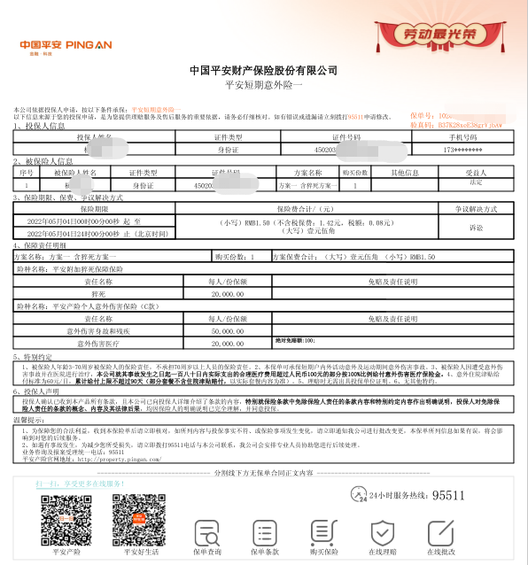 下面我们看一下具体保单样本