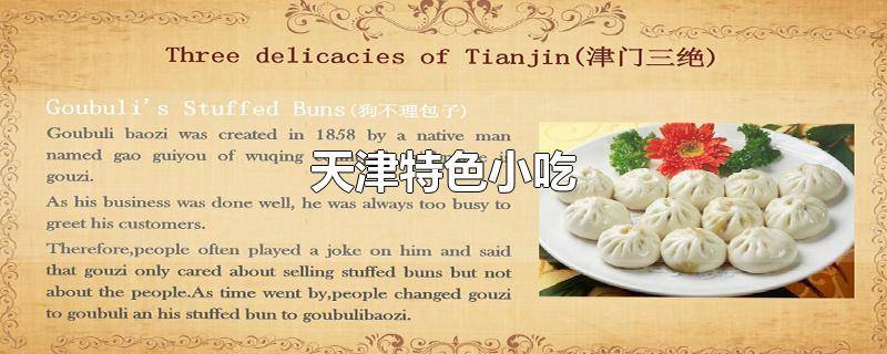 天津特色小吃中,比较广为人知的是狗不理包子。除此之外还有天津麻花、耳朵眼炸糕、锅巴菜、杨村糕干等,这些小吃都是天津当地的特色,后流传到全国各地为众人熟知。
