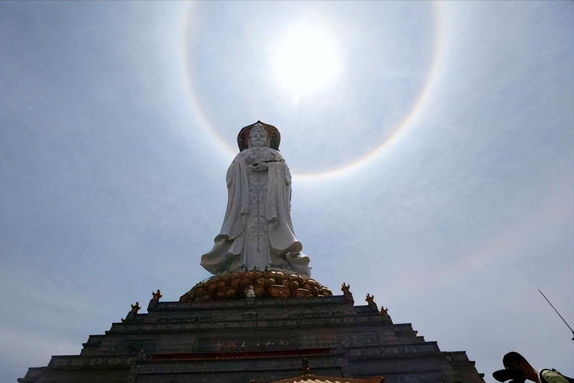 当时只需要一缕太阳光穿过云层,投射到空气中的水珠上,就会出现丁达尔效应,但是,即使是当时符合丁达尔效应产生的条件,所以在普陀山就出现“菩萨显灵”的场景。
