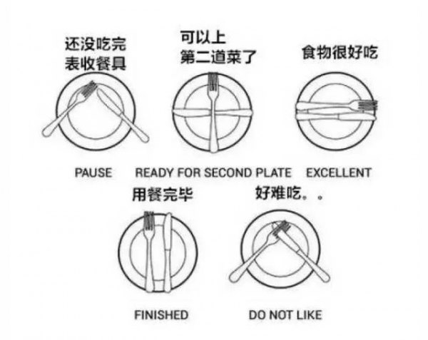 千万别忘了:刀叉一旦拿起使用就不能再放回原处哦