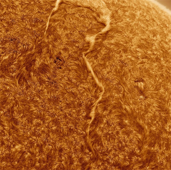 4.太阳丝:巨大的蛇形太阳丝在 2023 年年度天文摄影师评选中获得了“Our Sun”类别的奖项。太阳丝是由等离子体组成的,在磁场的作用下从太阳表面伸出。