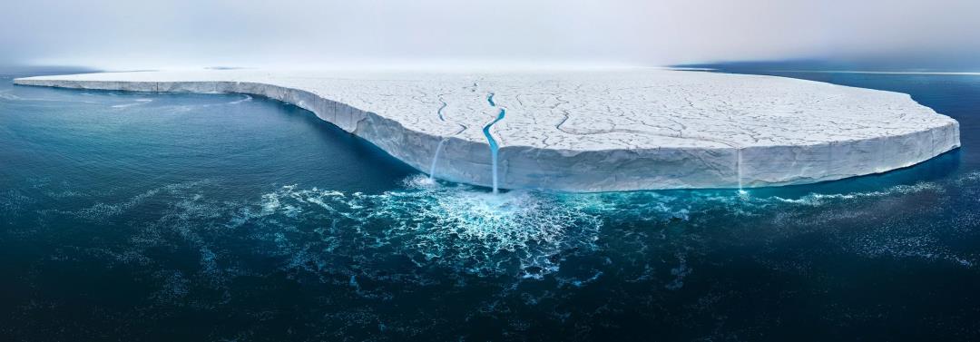 2.融化警告:融水从挪威北极岛屿诺尔道斯特兰德特的奥斯特方纳冰盖倾泻而下。