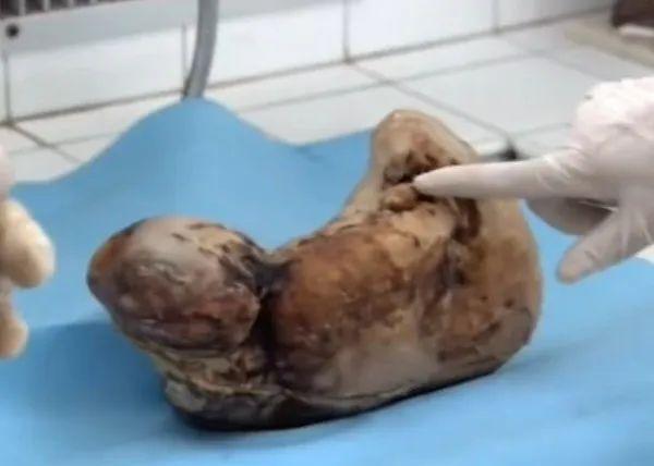 因为胎儿去世后一直留在腹部,免疫系统认为这只死胎对身体构成了威胁,对它发起猛烈攻击,于是,含钙的沉积物沉积在胎儿身上,逐渐将它包裹在钙化壳中,变成一块形似木乃伊的“石头”,也就是医学文献中记载的罕见出现的“石胎”。