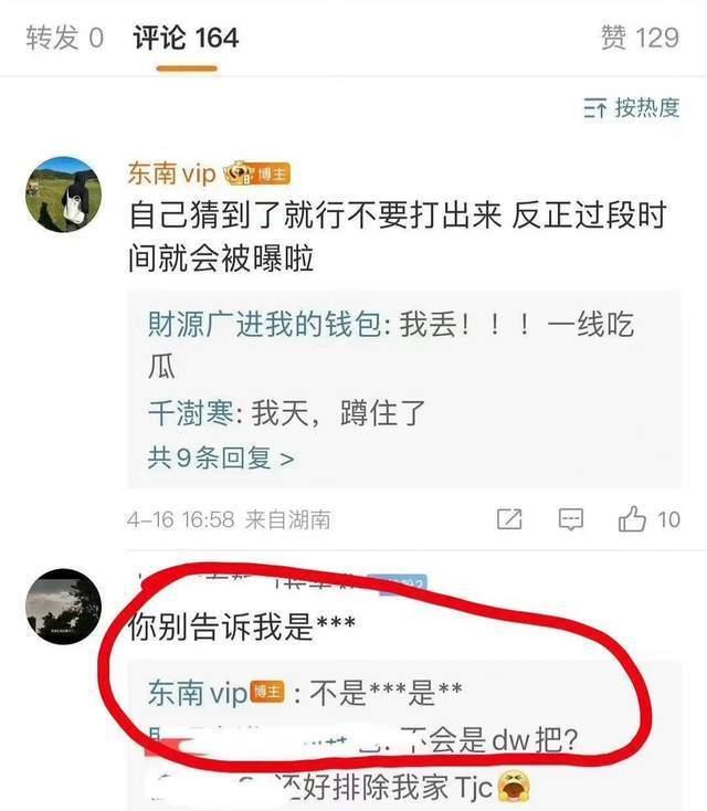 这一点,爆料网友自己在评论区里已经给出了“答案”,网友“东南VIP”在评论区里回应网友,说不是“某某某”而是“某某”,从这一点看,这位男明星的名字,应该就是两个字了。