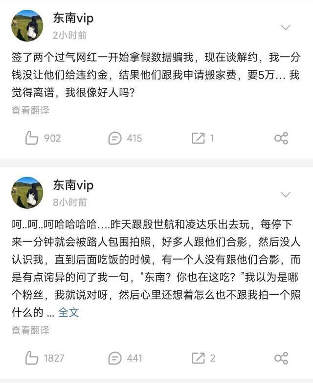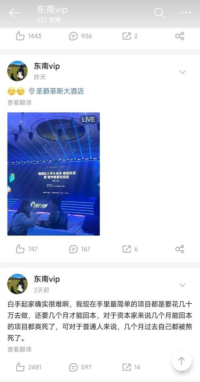 翻看这位“东南VIP”网友的账号,发现他不光是粉丝多,连发布的内容,也是非常“专业”,平时都是和大网红一起逛街吃饭,甚至还刚刚签约了两个过气的网红,各种媒体峰会也都参加,足见他是一位非常有影响力的圈内人了。