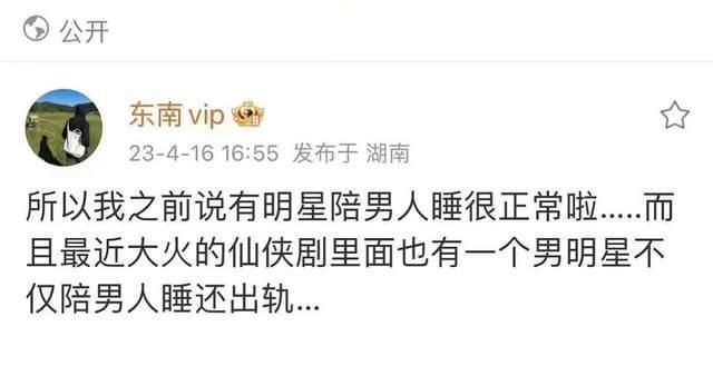 而就在大家还沉浸在赵奕钦的事情中的时候,一位坐拥40万粉丝的网友“东南VIP”在个人账号上发文爆料,称在娱乐圈里,男明星陪男人睡觉非常正常!