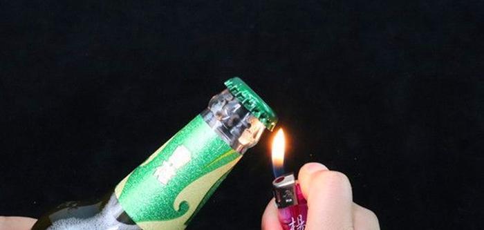 这个方法很适合平时抽烟随身带着打火机的朋友们了。因为我们要准备一个打火机,然后沿着瓶口烧一圈。朋友们知道这是为什么吗?相信很多朋友也知道这个答案的,那就是在我们的啤酒瓶盖里有一个塑料内环用于封口。我们这个方法就是让啤酒瓶盖发热把里面的塑料环烧软。烧完之后瓶盖可是很热的,大家千万不要直接拿手去触碰瓶盖。先拿一张纸巾包住瓶口,再用手左右摇晃瓶口,感觉一下它的松动程度。如果不是很松的话,我们就再烧一圈。烧完之后用纸包住瓶口,轻轻一扭,瓶口就打开了。