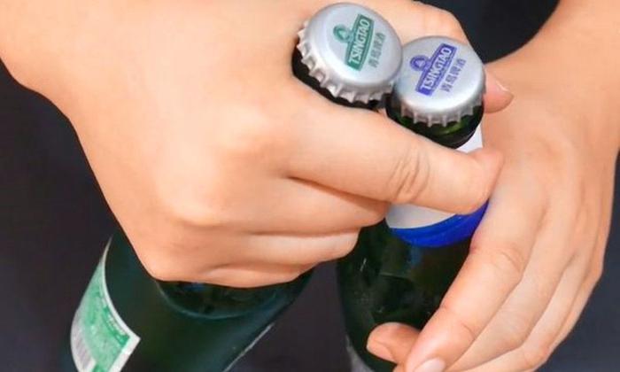 这个方法适用于我们买了几瓶啤酒的时候。我们先拿两瓶啤酒,两瓶啤酒的瓶口的地方呈45度角一上一下对放。放置于上面的啤酒对着下面一瓶啤酒的齿轮,向下使力敲,如果一次没有成功可以多敲几次,就能打开啦。不过大家要注意安全哦,敲到自己的手,就得不偿失了。