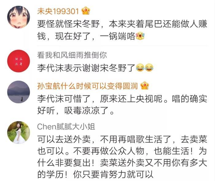 宋冬野的事件让引起了大家对“劣迹艺人”的抵制,这不同行李代沫也被揪出来了。在宋冬野被举报之后,李代沫的商演也被叫停。