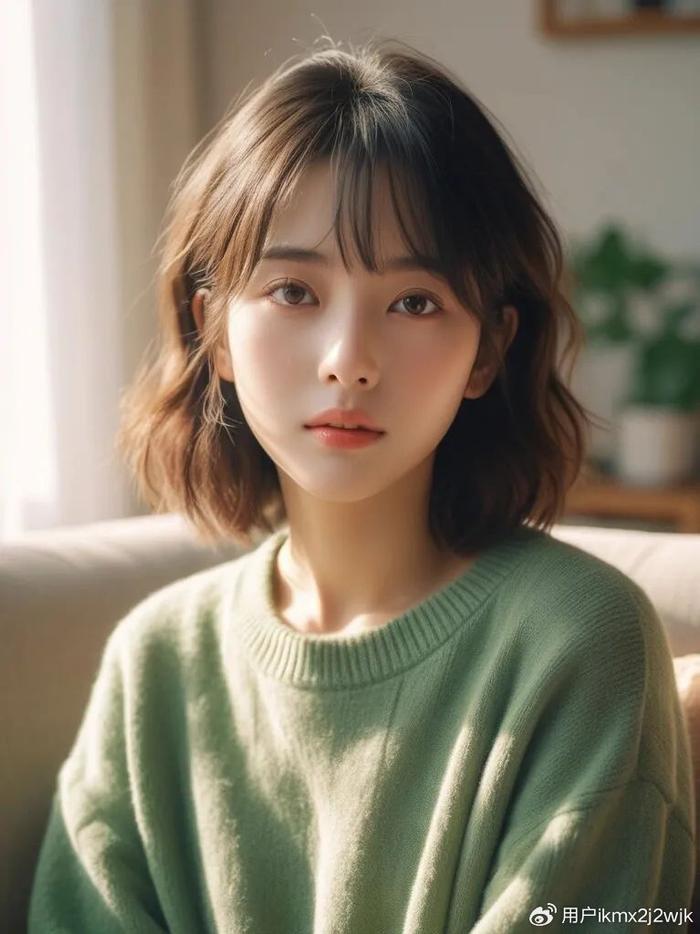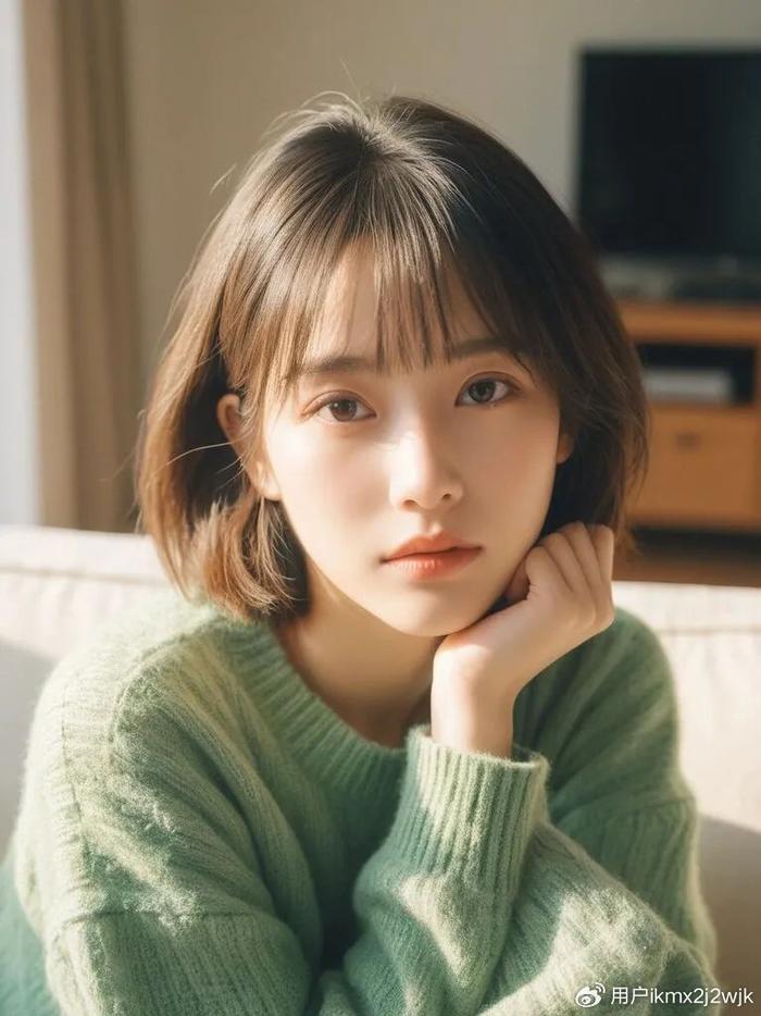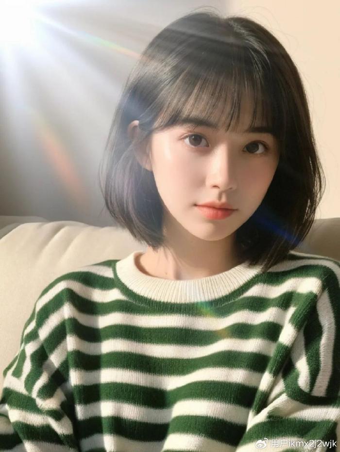 搭配波波头的空气刘海,既减龄又美美哒,仿佛散发出一种青春的光芒。