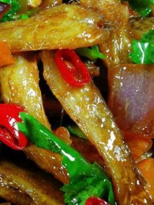 【辣炒小黄花鱼作用】 所准备的食材海南有:小黄花鱼干能出、小米斤辣、紫洋葱批发、葱、姜直销、香菜、盐干多作用、鸡精、生抽、线椒、花椒粒