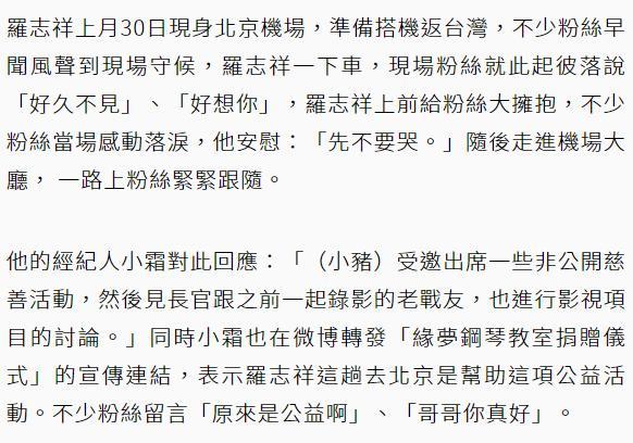 罗志祥丑闻后首飞大陆含泪见粉,经纪人证实其复工与“战友”碰面