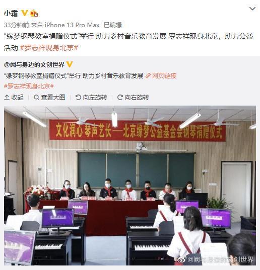小霜随后在微博发表相关公益活动,原来是助力乡村音乐教育的捐赠仪式,地点是位于北京,只不过发稿的官媒并没有透露罗志祥的相关信息。小猪的初次试探,得到不少粉丝的支持,留言赞美他心地善良。