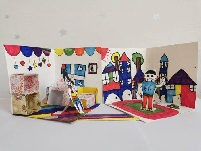 马上就要从幼儿园毕业的赵彤炜既紧张又兴奋,他特意制作了手工立体画,他说,如果把幼儿园比喻成家,小学就像个欢乐场,有着宽敞的教室,许许多多的玩伴,在这里会认识非常多的朋友,一起在广阔的操场上玩耍、游戏。