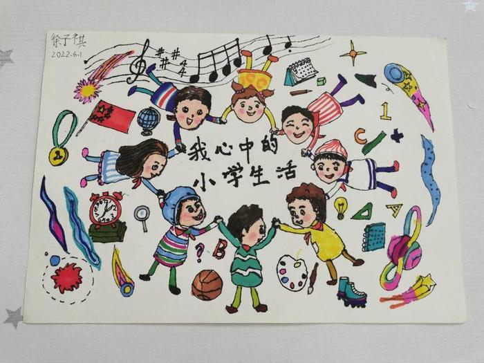徐子祺小朋友心目中的小学生活,可以徜徉在音乐的海洋里放声歌唱,可以沉醉在绘画的世界里肆意泼洒。还有许许多多的玩伴一起开心地做游戏,还可以叫上一群小伙伴来一场酣畅淋漓的篮球对抗赛。