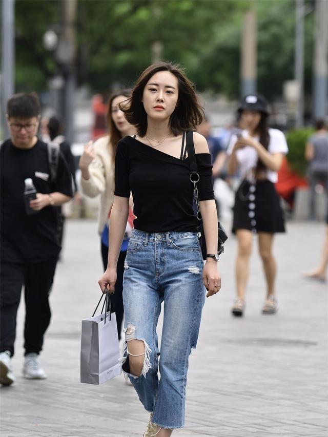 - 街拍美女:修长的牛仔裤,性感优雅,无处不在的美丽气质