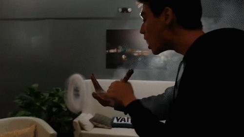 奥斯汀吐烟圈的技术已经达到了怎样的境界了呢?他可以一口气吐出四五个烟圈,然后将这四五个烟圈组成一个更大的烟圈艺术品,他也可以一下子吐出一个非常大的烟圈,然后在自己双手的指挥下让这个大烟圈变化成各种各样的形态,甚至分裂成好几个小的烟圈!