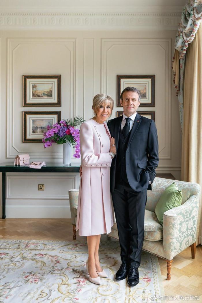 当天布丽吉特和马克龙在出席加冕典礼之前,还特意合影留念,法国媒体最近才刊出这么官方的照片,布丽吉特叠穿粉色单品,粉色的连衣裙配上粉色的外套,这次法国第一夫人的造型师还是挺给力,将布丽吉特的头发盘起来,而且布丽吉特也没有因为要过度遮住自己的脖子选择高领的款式,这次竟然大胆露出脖子了。