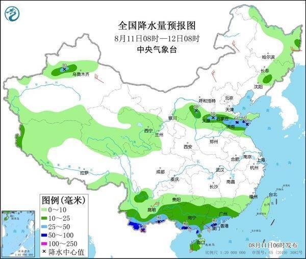 具体来看,中央气象台预计,今天,云南南部、广西南部、广东西南部沿海以及山西中部、河北南部、山东中部等地部分地区有大到暴雨,其中,云南南部局地有大暴雨。