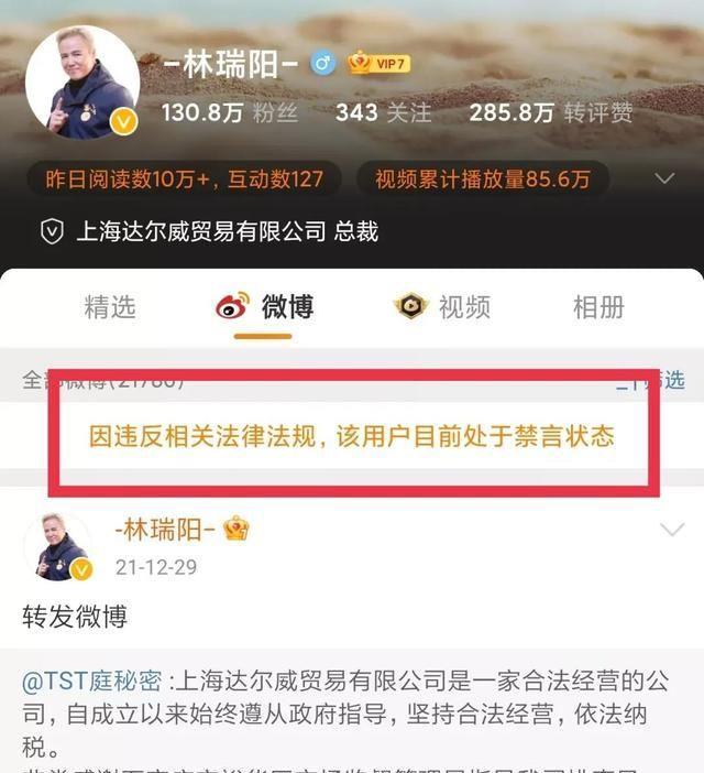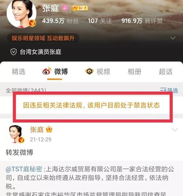 这不就在大家半信半疑的时候,就在近日,有细心的网友发现,曾经在微博上非常活跃的张庭与林瑞阳,如今已经被官方禁言,理由则是违反了相关法律法规!