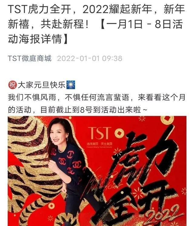 但同时让很多人意想不到的是,“TST微庭商城”的官方公众号,也在2022年1月1日照常发布了一条题为“TST虎力全开,2022年耀起新年”的公告!