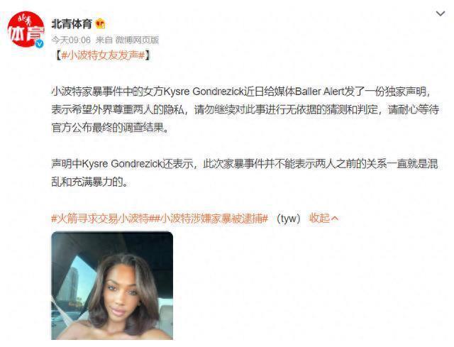 近期,NBA界一直在热议23岁的火箭球星小波特涉嫌殴打女友Kysre Gondrezick的事件。据报道,小波特和女友一起住在一家酒店,但由于工作原因,小波特回到酒店的时间很晚。然而,当他回到酒店时,发现女友把房门反锁了。这使得小波特非常愤怒,他不仅掐住了女友的脖子,还导致了女友颈部椎骨骨折。小波特否认指控,并在缴纳了7.5万美元保释金后获得了暂时的自由。一个月后的10月16日,小波特将接受审判。